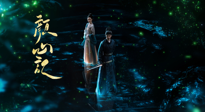 “水镜花颜”版人物海报中,人物侧倚,轻抚水面。水上人物神态各异,水下仿若暗影涌动,一人一花,故事欲语还休,似带领观众从这镜花水月中窥探世间爱恨情仇百般真相。两版海报让网友置身奇妙幻境,引发对剧情内容的无限遐想。