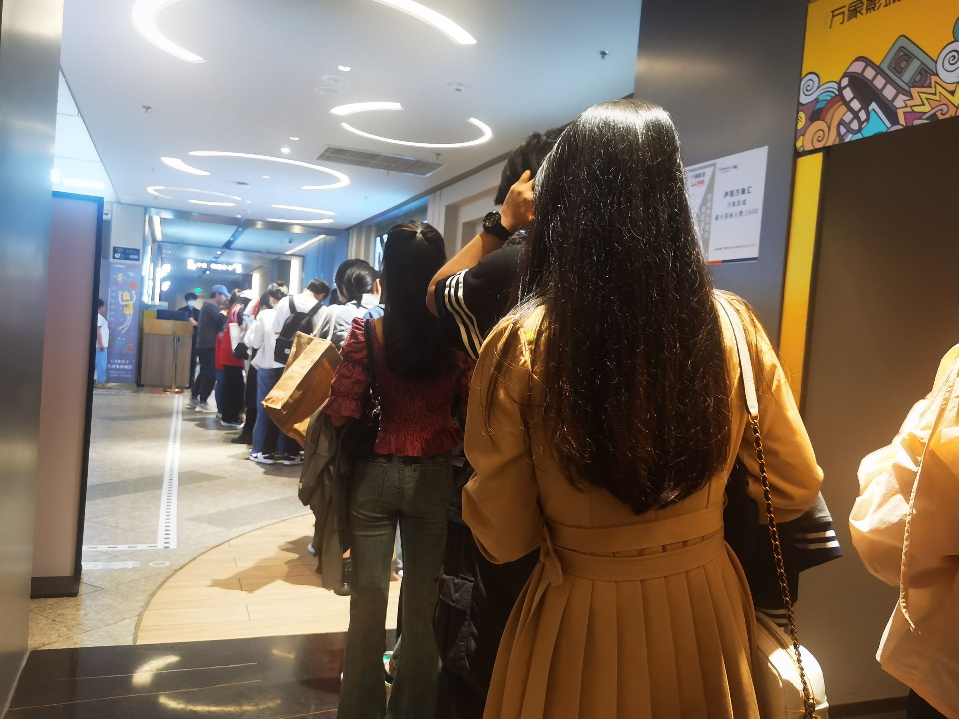 “我是二刷了,你呢?”听到队伍里的小伙伴询问,王莉表示“我是四刷了。”她告诉记者,从《灌篮高手》电影点映到五一,她已跑了三个区的电影院看了三场,她感慨,当天来看应援场,感受的就是一种氛围。