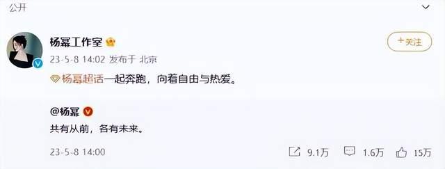 她写道:“共有从前,各有未来。”其工作室也直接改名成为杨幂工作室,去掉了嘉行相关字眼。