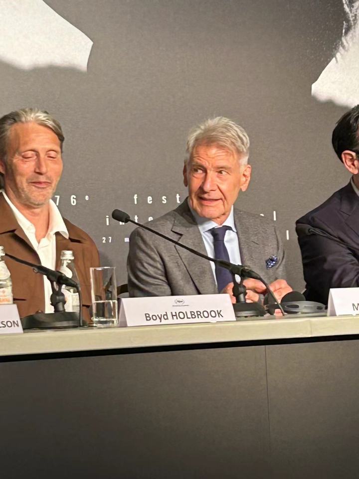 因为有哈里森·福特和麦斯·米科尔森,戛纳发布会又变得非常热闹。哈里森·福特一头花白头发,说起前一晚的首映,拿到荣誉金棕榈时,他说自己十分激动,同时也感觉到了生命的流逝。