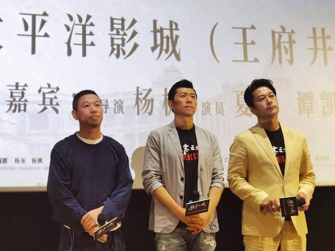 路演现场。导演杨枫(左)演员夏雨(中)演员谭凯(右)