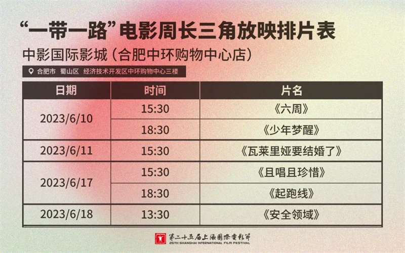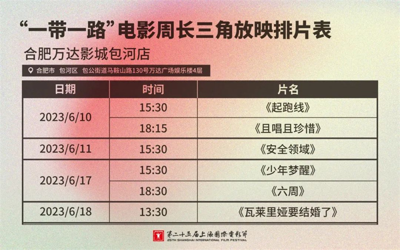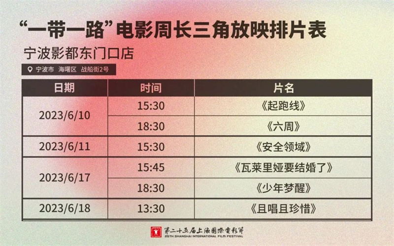 现代快报讯(记者 李艺蘅)你抢到票了吗?6月2日中午12点,第二十五届上海国际电影节展映正式开票,吸引了无数影迷的关注。对于无法前往上海的长三角地区影迷也不必遗憾,本届电影节“一带一路”电影周将继续带来长三角放映。6月10日至11日及6月17日至18日期间,分别在南京、苏州、杭州、宁波、合肥等5座城市的6家影院,展映来自“一带一路”沿线国家成员机构推荐的精选影片。