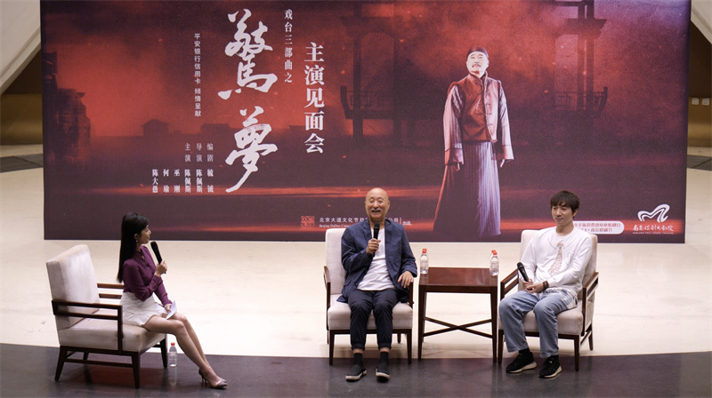《惊梦》中,陈佩斯饰演昆曲大班和春社班主童孝璋,陈大愚则扮演热爱昆曲的城中首富之子常少坤。主演见面会上,父子俩坦言以前对昆曲的了解并不太多。“为了这个戏,我们主演和编剧一起做了很多功课,包括昆曲的起源、历史、经典剧目、唱段……去深入研究这个剧种。”陈佩斯说,昆曲大家张继青先生对他本人、对这部话剧都有着深刻的影响,“我是看着她的录像,听她的录音,一点点学习,一点点走进了昆曲这个殿堂的。《惊梦》也是我们向她致敬的一个剧目。”
