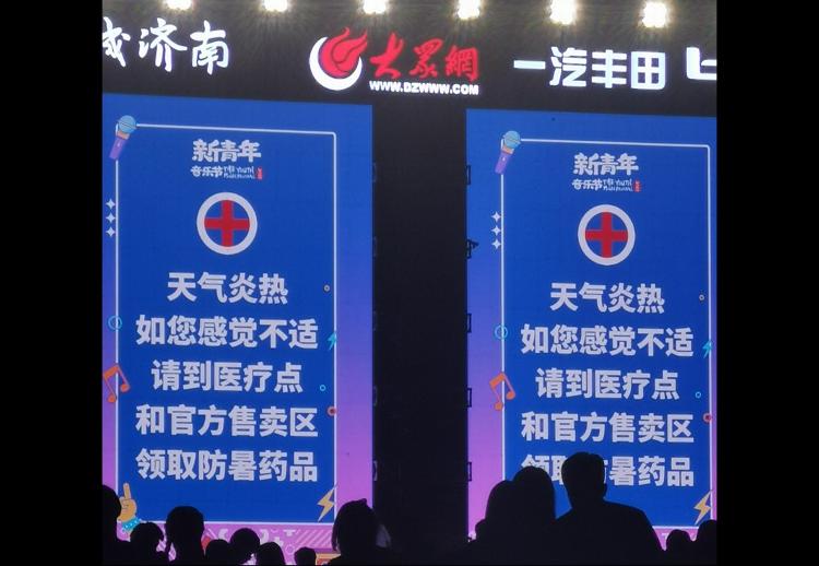 为了保证乐迷的观赏体验,主办方还免费发放藿香正气水、调运冰块、备齐各类防暑降温药品、发布防暑降温小提示。“天气炎热如您感觉不适,请到医疗点和官方售卖处领取防暑药品”“若体感不适,请联系身边的安保人员前往医疗救护点”“请保护好你身边的她/他”……演出间隙,舞台屏幕循环播放着温馨提示,让乐迷们时刻感受到主办方的用心、细致和专业。