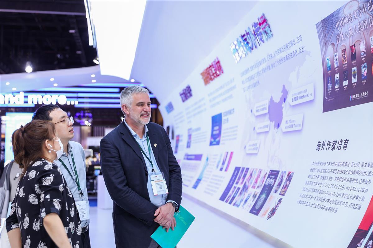 作为本届图博会的新设场馆,网络出版馆引发众多关注。首次亮相网络出版馆的阅文展台以“让好故事生生不息”为核心设计理念,设置了党建引领、版权保护、现实题材、IP精品、海外传播等板块,着重展示网络文学主流化发展成绩与出海成果,开展首日就吸引了Springer、Amarin等十多家海外出版机构的问询合作。