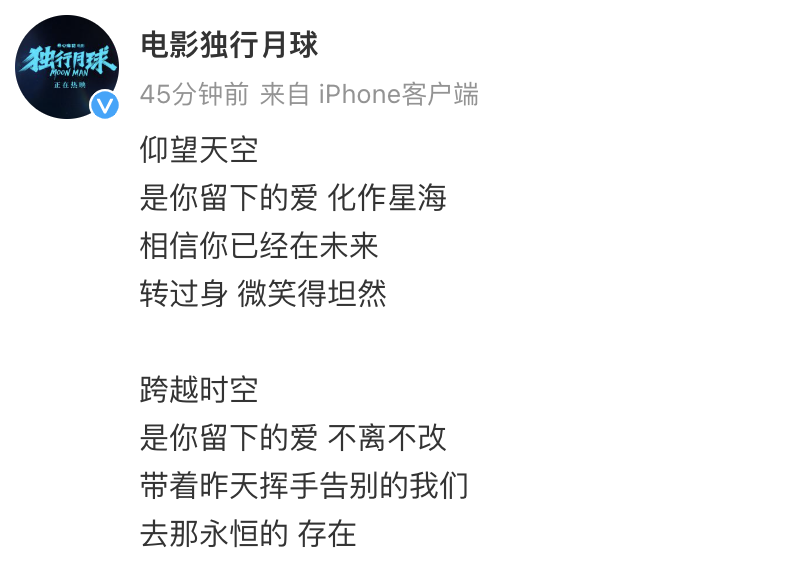 2022年,李玟为电影《独行月球》演唱了主题曲《你留下的爱》。《独行月球》影片官博用歌词表达悼念: