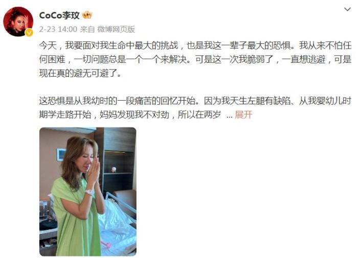 今年2月,李玟发文谈到不得不做的手术,还说自己是“女战士”,虽然要重新练习走路,但“不管怎么样,我会努力一步一步往前走,我知道我一定可以的。”