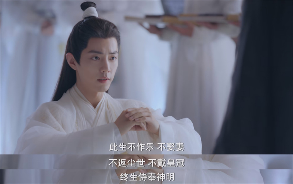 第三招,也是核心招数,就是“虐恋”。玄幻仙侠里的“虐恋”,基本都是源于禁忌之恋。《花千骨》之后,师徒虐恋基本就成了标配。虽然是在幻想世界里,但仍然延续“一日为师,终身为父”的伦理秩序,师徒关系是相爱的阻碍。《玉骨遥》中,时影与朱颜也是师徒关系,成为少司命的时影在神明面前许下誓言,“此生不作乐、不娶妻,不返尘世、不戴皇冠,终生侍奉神明”。可清冷孤高的他,终将被天真烂漫的朱颜打动。