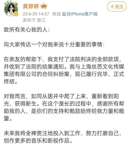 600余万的解约费让不少网友颇感震惊,这家公司的注册资本两百万都没有,一个艺人解约居然就能得到600多万吗?无独有偶,就在六月底,此前被广泛关注的SNH48前成员黄婷婷与经纪公司丝芭文化的解约案也终告一段落,黄婷婷与丝芭文化提出解约后,丝芭文化要求黄婷婷赔偿350万元解约金,黄婷婷无力支付高额违约金而上了失信被执行人名单,法院在她的名下仅查到约9万元财产。6月底黄婷婷在社交平台告知,自己在众多亲友的帮助下把350万元违约金付清了,她的解约案正式终结。而最初,丝芭文化要求黄婷婷支付违约金1000万元,被法院以违约金额过高驳回,丝芭文化旗下还现涉及有大量合同纠纷,纠纷对象几乎都是旗下的艺人,违约赔偿金从几十万到几百万不等。