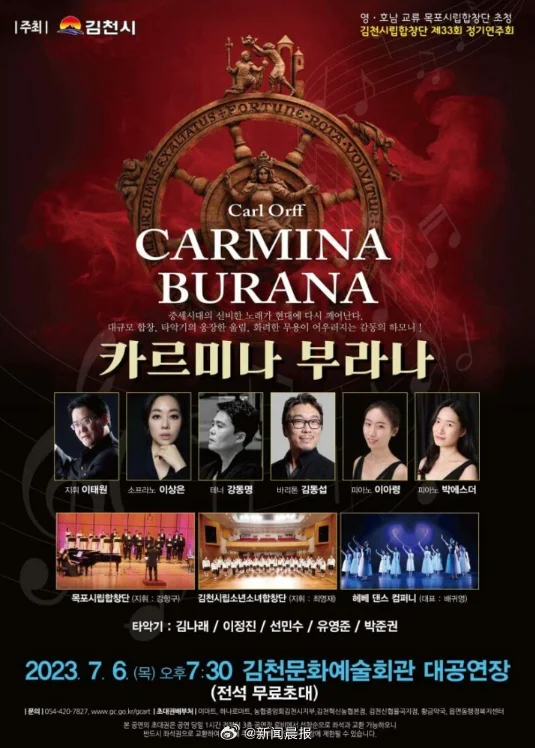 李尚恩当天演出的曲目是《卡米娜·布拉纳》,是以中世纪为主题的大型歌舞演奏合团。(杭州交通918)