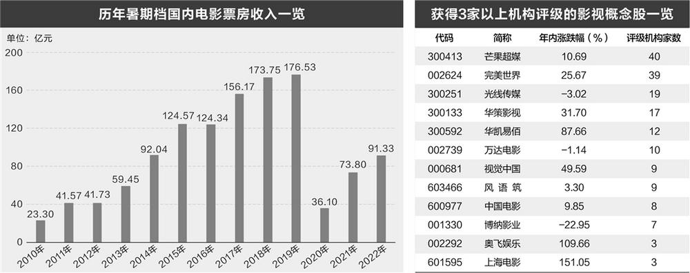 影视股中,有多股获得机构评级,芒果超媒、完美世界分别获得40家和39家机构评级,光线传媒、华策影视等4股的机构评级家数均达到或超过10家。