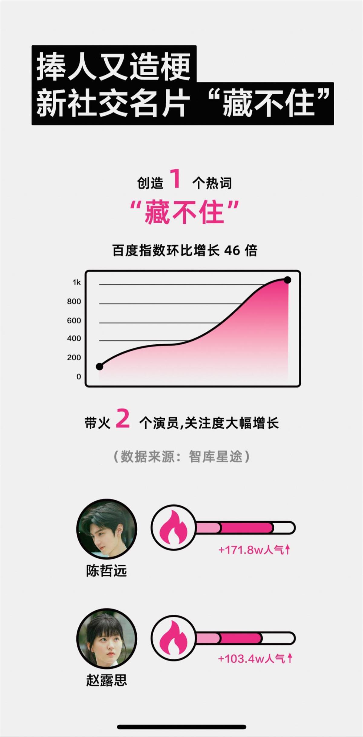 一部剧是否爆红,有没有让演员跃升知名度是非常关键的参照元素。《偷偷藏不住》播出之后,主演陈哲远从“小透明”变成炙手可热的小生,智库星途数据显示,陈哲远全平台人气上涨171.8万,更在热播期内新增两个品牌代言,在国民度和商业价值上均有大幅增长。
