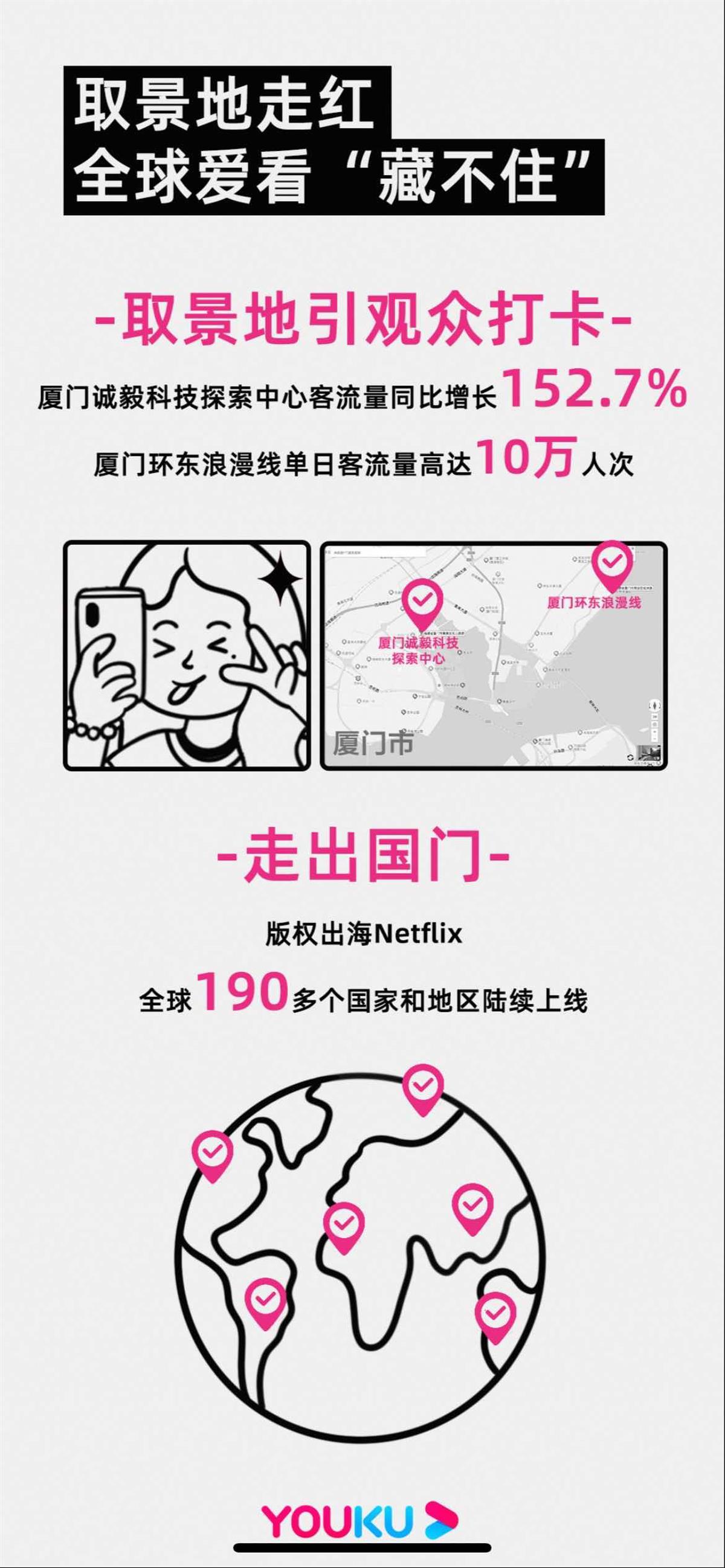 同时,因为在厦门取景,《偷偷藏不住》也推热了端午节期间厦门的火爆程度。官方数据显示,观众打卡《偷偷藏不住》取景点的热情带动厦门诚毅科技探索中心客流量同比增长152.7%,环东浪漫线单日客流量高达10万人次。《厦门日报》都发文称:“藏不住啦!厦门景点又成爆款”,来观察热度现象。