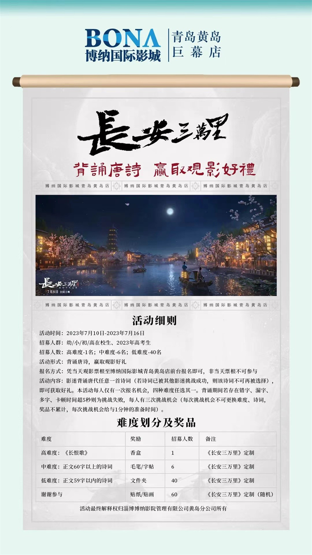 事实上,能够跟着电影一起背诵诗词,也是影片前期营销的方向,一些影院也适时推出了配合电影宣传的背诗挑战活动。