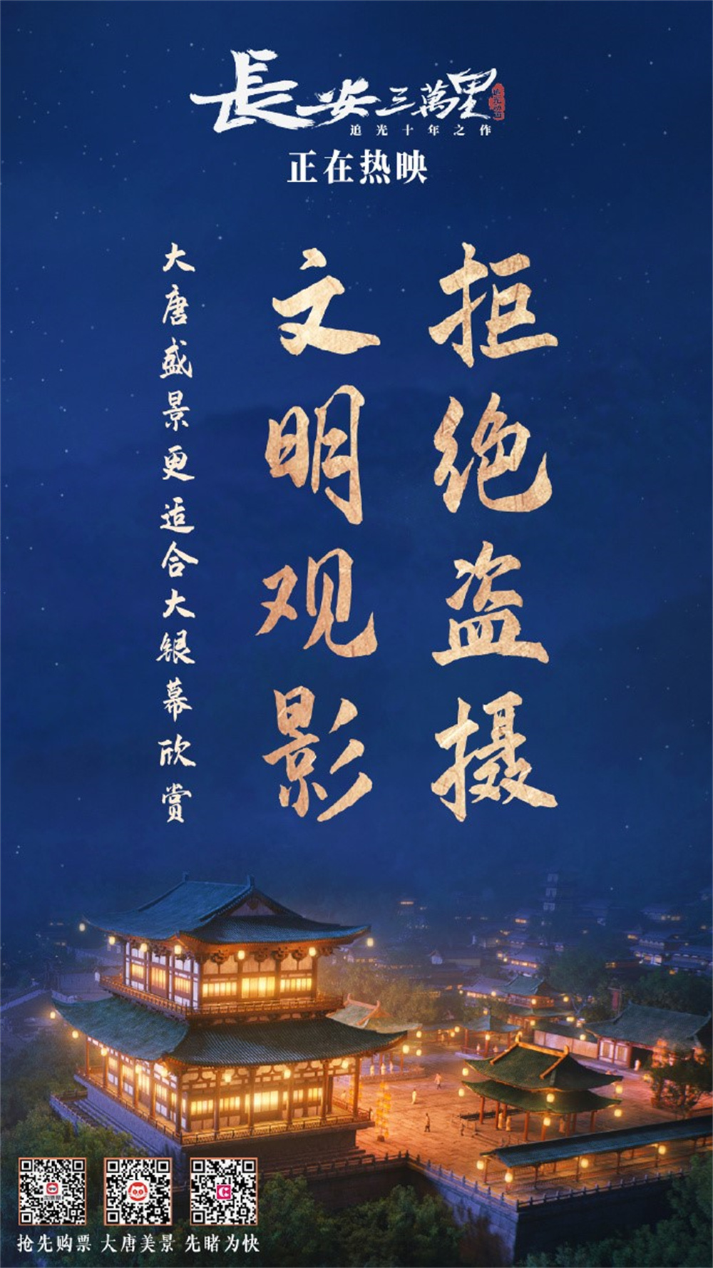 社交网站上,关于耳熟能详的诗词片段的截图和小视频更是常见。影片上映当日,片方就在官微上发布了“文明观影拒绝盗录”的海报,号召观众们将唐风之美在电影院里静静欣赏,但无论微博、抖音、小红书等平台上,关于影片华彩篇章的屏摄画面依然层出不穷。