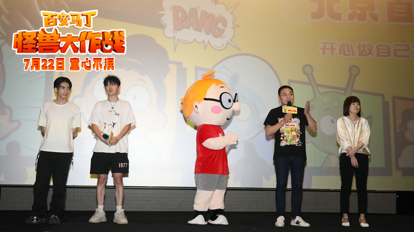 即将于7月22日暑期档上映的电影《百变马丁:怪兽大作战》日前在北京举办首映礼,导演张天晓与编剧孙平携马丁人偶惊喜亮相,同时还有主题曲《马丁Moring》的词曲作者程之沫、插曲《像我一样的人》演唱者韦释迪现身,与现场观众进行超有爱互动,更有观众当场激动表达对影片的喜爱,掀起现场高潮不断。据悉,该片是经典动画IP《百变马丁》(原《马丁的早晨》)自二十年前开播以来的首部大银幕之作,一年“365变”的马丁可以说是一代人共同的回忆。“童年永不落幕,经典永远泪目”,等电影正式上映,大朋友们能够一票重返天真时光,小朋友们也可以在马丁和小伙伴们的冒险旅程中收获快乐。