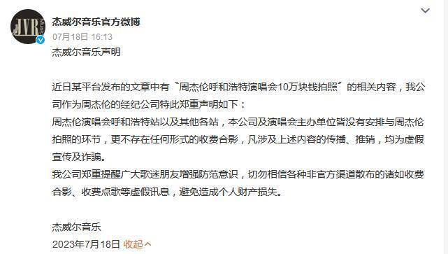 这些所谓的合影资格售卖究竟是真是假?有网友说,“黄牛就是拿你的运气来碰个概率,譬如黄牛说能让我进活动内场,结果就是让我穿的跟保安一样把我抱进去企图蒙混过关,2万一张的合影就是把人往周杰伦身边一推然后抓拍。”周杰伦的个人娱乐公司杰威尔音乐也关注到了这一情况,7月18日杰威尔音乐发布声明称,“周杰伦演唱会呼和浩特站以及其他各站,本公司及演唱会主办单位皆没有安排与周杰伦拍照的环节,更不存在任何形式的收费合影,凡涉及上述内容的传播、推销,均为虚假宣传及诈骗。”看来,这些声称自己有内部渠道的卖家,几乎都只是企图欺诈粉丝的骗子罢了。