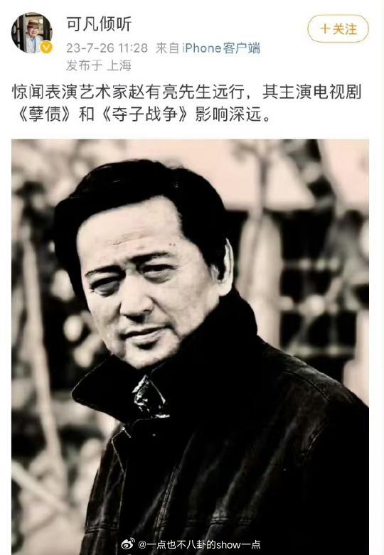 7月26日,据主持人曹可凡透露,原国家话剧院院长、著名演员赵有亮去世,终年80岁。