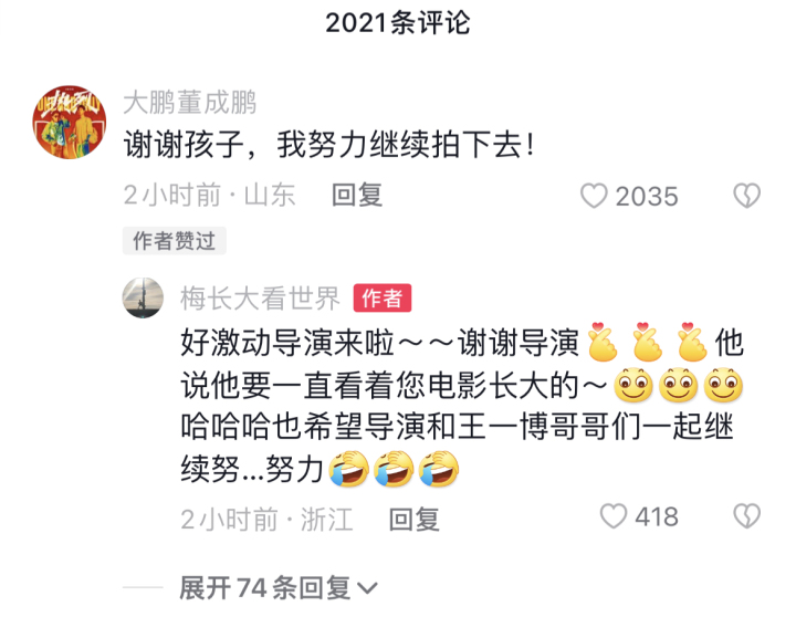 今天,大鹏也特地在视频下留言:“谢谢孩子,我努力继续拍下去!”