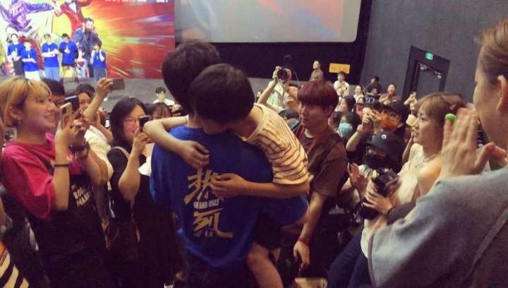 路演临别时,大鹏导演特地走到观众席,一把抱起一未,他告诉一未:“希望你长大后也继续看我的电影。”