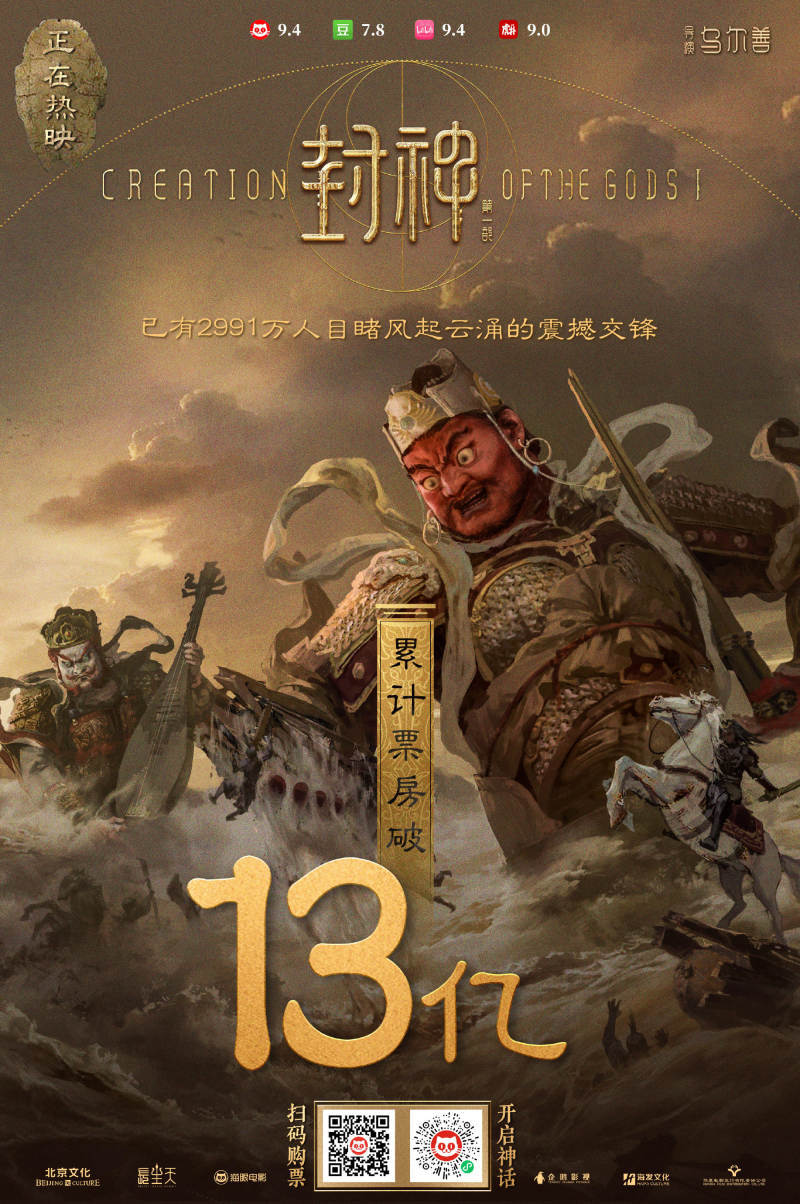 《封神第一部》上映近半月,依然后劲十足,截至昨晚11时,该片再次蝉联了单日票房冠军。8月2日,电影《封神第一部》在官方微博发布海报,庆祝影片上映14天,票房突破13亿。片中,殷郊被捆绑、质子战舞等场面更在社交网络上引发大规模的讨论,吸引不少观众前去影院二刷三刷影片。