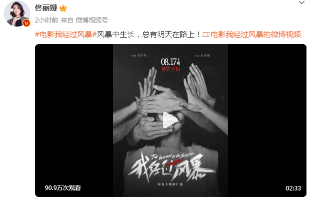 今(8)日,是演员佟丽娅40岁的生日,在生日当天,佟丽娅分享了新片《我经过风暴》的同名主题推广曲MV,并配文:“风暴中生长,总有明天在路上!”