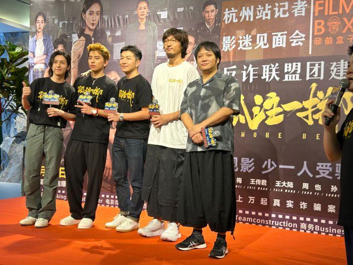 主创一众休闲打扮来到现场,不少影迷笑言,片子里的反派都来了。确实除了受害者的扮演者王大陆,王传君和孙阳饰演的都是诈骗工厂里的大反派。点映票房破了纪录,主创们都非常欣慰。