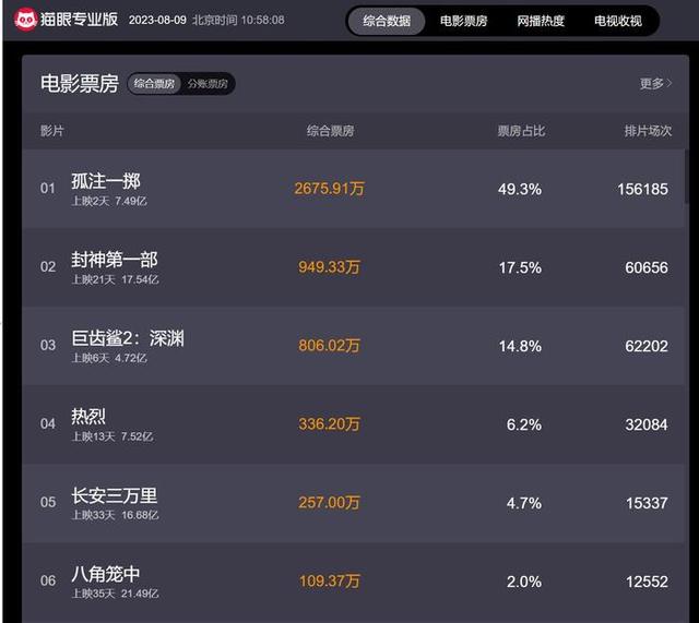 济南某连锁影院经理也向新黄河记者透露,《孤注一掷》的多场次的点映,确实会对《封神第一部》《巨齿鲨2》等正在热映的电影带来一定影响。不过,与此同时,它也为整个点映市场带来增量,在一定程度上,让整个电影暑期档的火热得以延续。