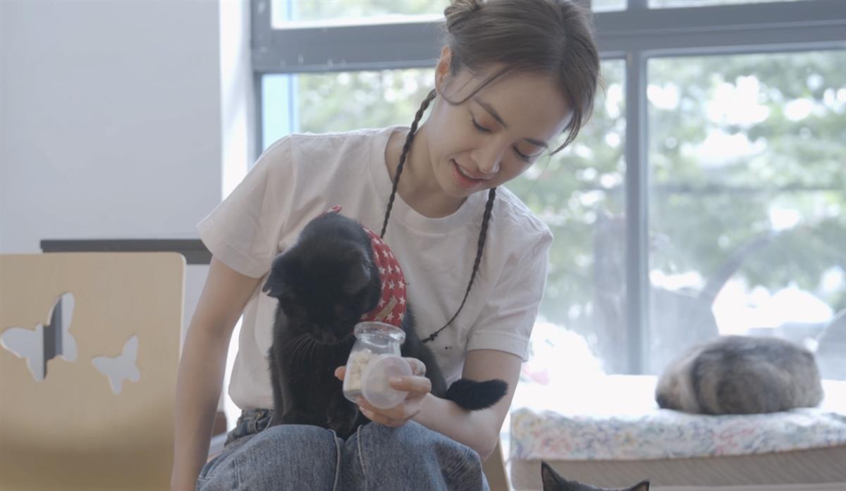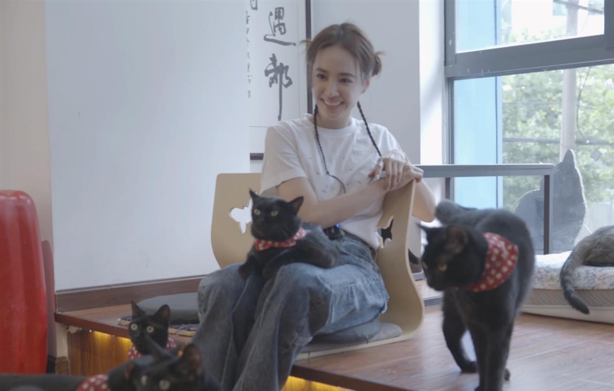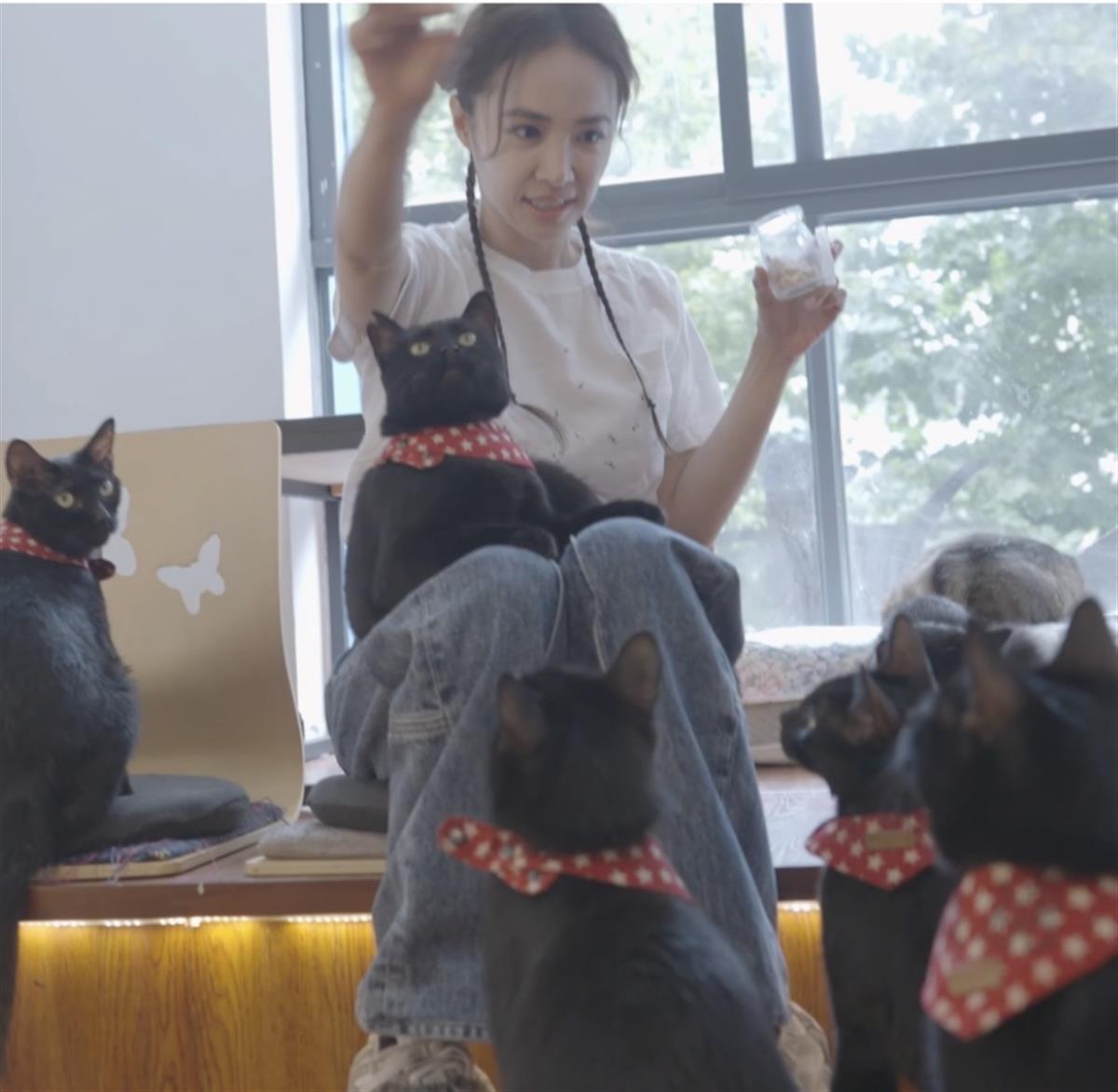 从蔡依林发布的视频来看,她一进入猫咖就被近30只黑猫“包围”,每只猫咪都围着定制的小围巾,上面写着它们的名字,萌态动人。一只名叫“四宝”的黑猫更是毫不认生地跳到蔡依林的腿上,摇着尾巴等抚摸。