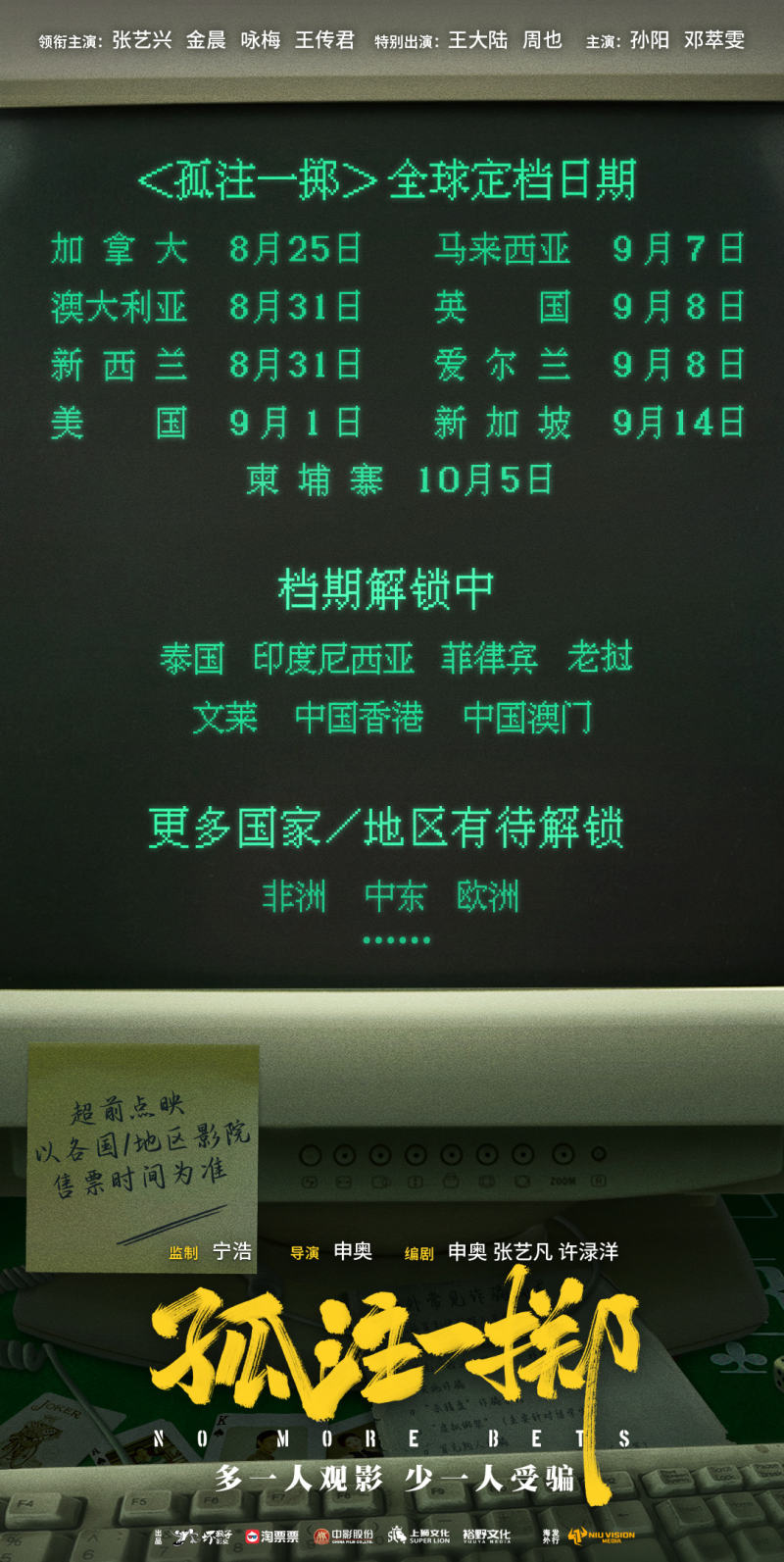 电影《孤注一掷》全球定档日期。图片来自官方微博