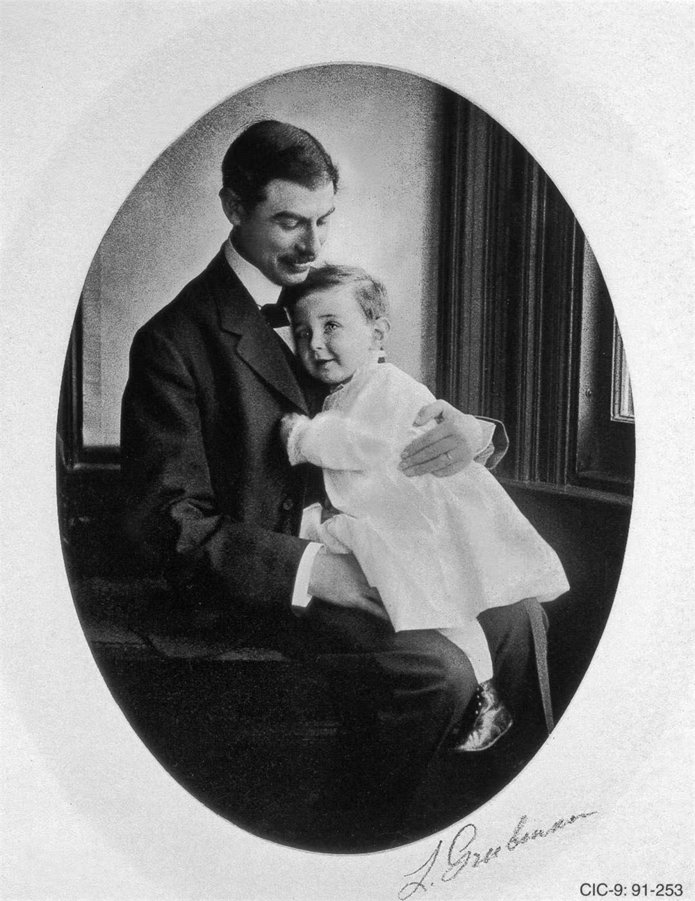 幼年奥本海默坐在父亲的膝头
