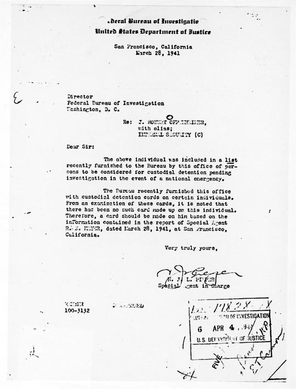 1941年,奥本海默已被联邦调查局列为可疑的激进分子,一旦国家发生紧急情况,他将会被拘留。