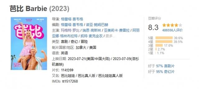 电影《芭比》由格蕾塔·葛韦格(《小妇人》《伯德小姐》)执导,玛格特·罗比饰演芭比,瑞恩·高斯林饰芭比的男友肯。影片故事讲述:芭比们和肯们住在一切都很完美的童话王国,直到有一天一对芭比和肯意外去了现实世界。