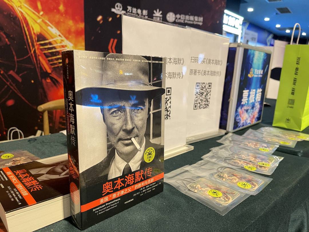 成都观影会现场《奥本海默传》等图书和周边