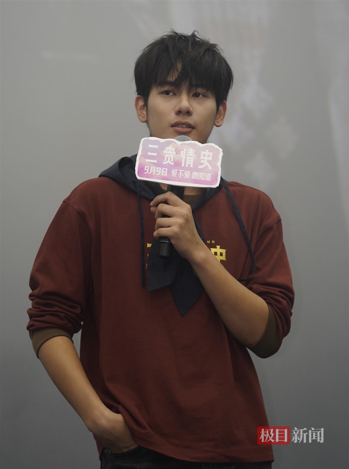 9月10日,奇幻爱情童话电影《三贵情史》剧组来汉路演,影片总制片人付佳、导演刘斯逸和主演胡先煦出席活动,与江城影迷热情互动。男主角胡先煦在接受极目新闻记者专访时表示,他始终相信这个世界上有真爱存在,“也相信有人会一吻定情。”