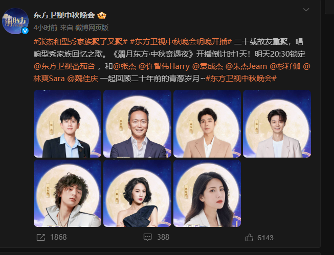 鱼丁糸、时代少年团加盟湖南卫视中秋之夜