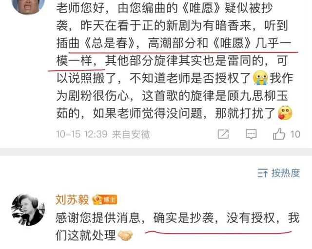 这次的抄袭风波与电视剧本身没关系,主要是插曲的问题。有网友向疑似被抄袭对象《长风渡》剧集插曲《唯愿》的编曲创作人询问,《唯愿》编曲@刘苏毅在评论区回应:“确实是抄袭,没有授权,我们这就处理。”