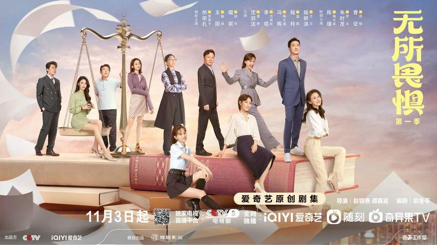与此同时,由中央电视台、爱奇艺出品,煌程影业联合出品,赵冬苓编剧,赵锦焘、谭嘉言执导,热依扎、王阳、啜妮领衔主演,沈羽洁、李煜、冯晖、程梓、陆妍淇主演,陈瑾、朱时茂、郑晓宁、曹征特别主演,冯雷、杨志刚等友情出演的律政职场爽剧《无所畏惧》第一季也官宣将于11月3日在CCTV-8和爱奇艺双平台播出。