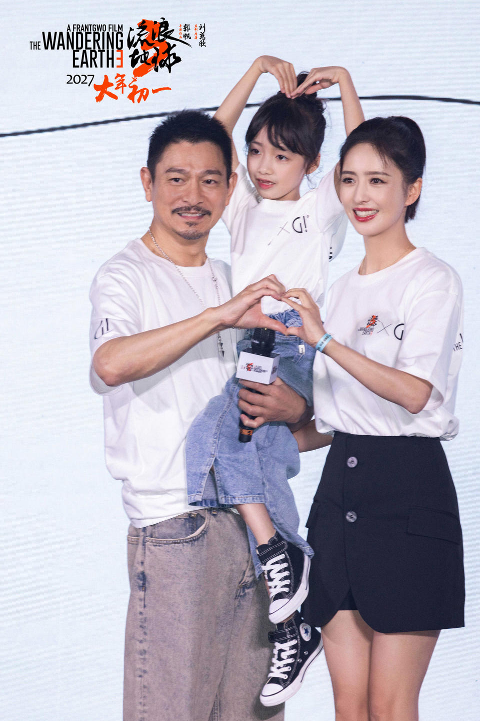 除了感谢对我们伸出援手的亲朋好友以及幕前幕后主创外,郭帆导演还特别在现场对观众致谢。他将观众称为亲人,而小破球前进的每一步都少不了亲人们的支持,借此发布会机会,郭帆导演特别为观众送上一份礼物——“感谢发电”特别短片。短片记录了《流浪地球》系列上映后观众为影片奉献一幅幅手绘作品,一件件手工制作,一支支特色视频,他们在网络世界中进行“二创”传播,制造话题热梗,每一声“加油”,每一句“我们一直都在”伴随小破球成长。影片主创李雪健、吴京、刘德华、佟丽娅、沙溢、宁理、王智也来到台前真诚向观众致谢。李雪健老师对于年轻观众对自己的喜爱颇为意外:“《流浪地球2》是我当演员四十多年来,第一次完整拍摄一部科幻题材电影,希望能和大家一起科幻下去。”吴京则表示:“我经常会在网上看到许多观众的二创和留言。大家经常给我出主意,帮我想《流浪地球3》刘培强要怎么复活。”而刘德华则幽默回应:“我时不时上网学习一下粉丝最近在聊些什么,又“嗑到了”什么。”作为网络冲浪达人,刘德华经常看粉丝留言以及二创作品,话题热梗也是信手拈来。“给马鸥完整的一生”、“00后张鹏”、“太空玫瑰韩朵朵”……佟丽娅、沙溢、宁理、王智也对观众真诚表达了感谢,自己的角色受到喜爱,是创作路上最大的动力。令人意外的是,《流浪地球》系列电影中年轻的小伙伴们屈楚萧、朱颜曼滋、屈菁菁、杨轶、王若熹、姜志刚也惊喜亮相,主创们纷纷分享了自己印象最深的一句台词,瞬间将观众拉回到电影之中。主创还打趣到,电影中令观众印象颇深的刘培强一家、图恒宇一家终于凑齐了,现场还上演以家为单位的比心环节,十分温馨。