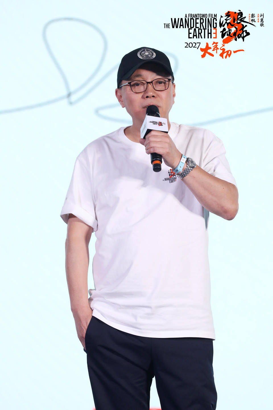 11月3日,在第36届中国金鸡百花电影节举办之际,郭帆导演带着电影《流浪地球3》再次回到厦门,举行“前进三”发布会。发布会上众主创嘉宾共同感恩过去,聚焦当下,展望未来。更有“中国科幻第一人”、电影《流浪地球》系列原著作者、监制刘慈欣化身“催更人”幽默催更。借此机会,电影《流浪地球2》出品人、总制片人、总监制,中影董事长傅若清,电影《流浪地球》、电影《流浪地球2》部分演员李雪健、吴京、刘德华、屈楚萧、佟丽娅、沙溢、宁理、王智、朱颜曼滋、屈菁菁、杨轶、王若熹、姜志刚,电影《流浪地球》系列制片人龚格尔、吴羡,以及幕后主创团队剧本指导王红卫、美术指导郜昂、声音指导王丹戎、声音设计祝岩峰、B组导演孔大山等主演主创与郭帆导演共同宣布电影《流浪地球3》正式定档2027年大年初一,更令人激动的是,导演郭帆现场官宣电影《流浪地球》、电影《流浪地球2》的演员全员回归。
