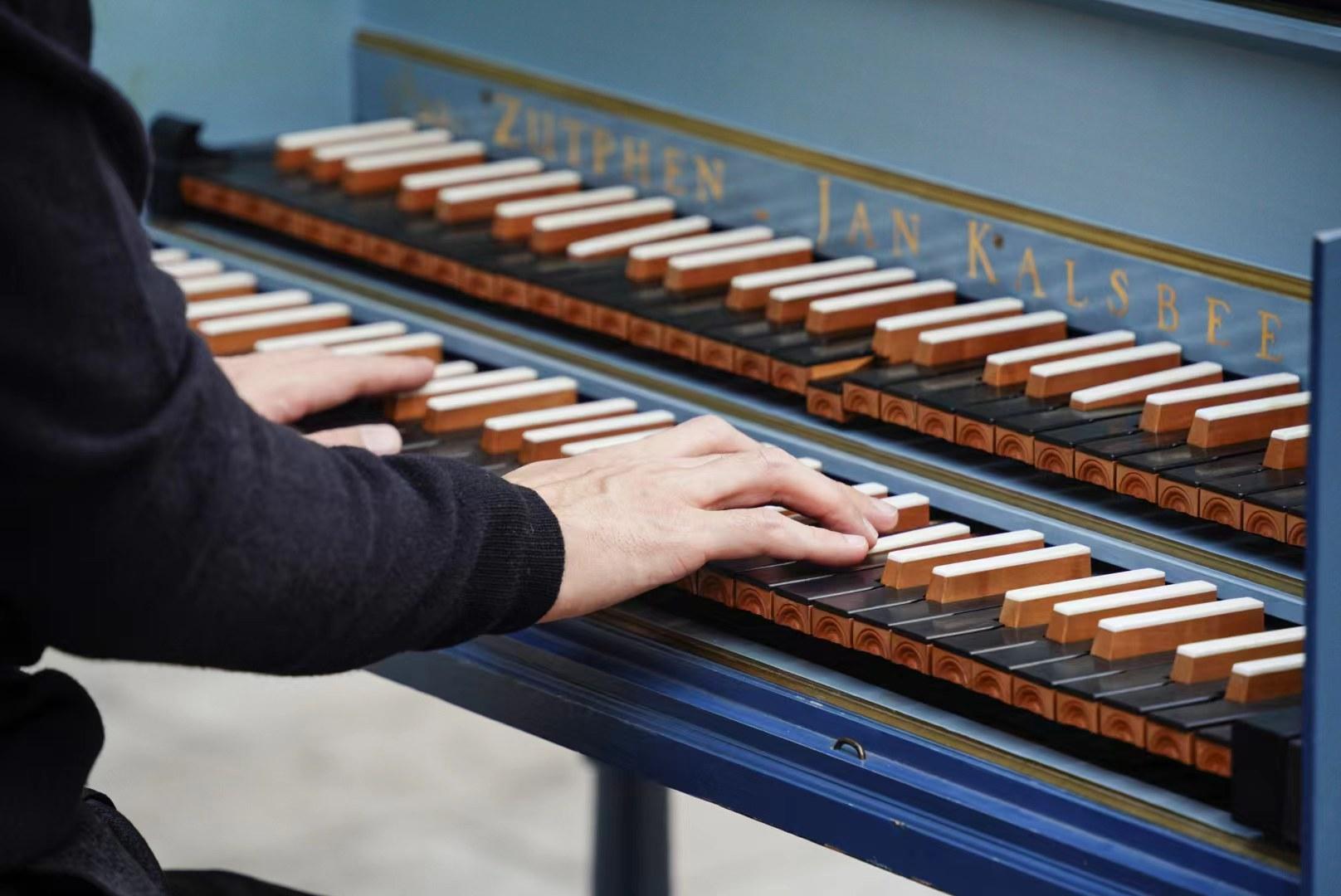 10月30日,羽管键琴家江禹杉在大修后的万寿寺内奏响巴赫的《平均律键盘曲集》。图源:北京古建音乐季