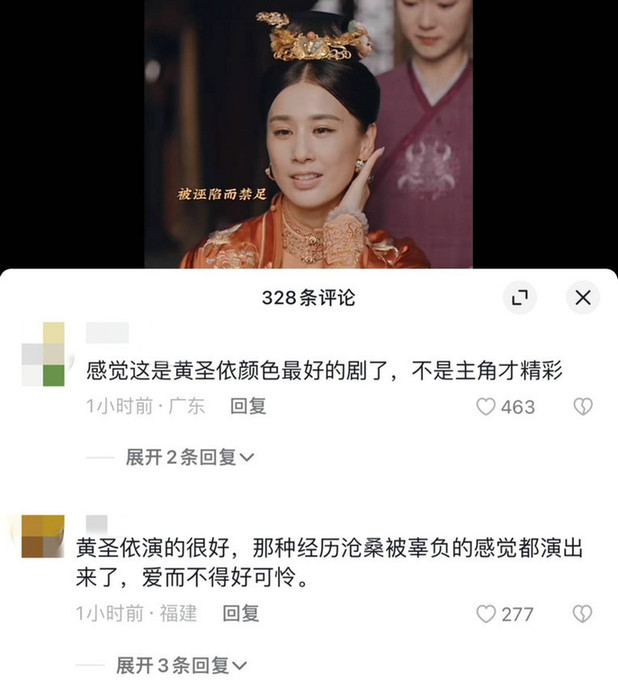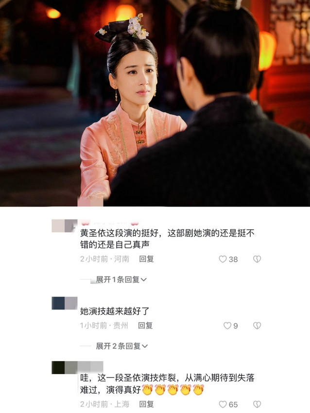 黄圣依在《岁岁青莲》中把一个任性傲娇、皮笑肉不笑,看似云淡风轻、实则内心愤怒又苦闷的“瑶夫人”演活了,一举一动都拿捏住了人物的精髓,成为这个剧的亮点之一。“黄圣依演得很好,那种经历沧桑被辜负的感觉都演出来了,爱而不得好可怜”、“黄圣依演技炸裂,还用了自己真声”、“无论从《功夫》、《天下第一》,再到现在的《岁岁青莲》,只要黄圣依一出现,就很吸引观众的眼球,皮相和骨相都优越,漂亮出众气质好。”网友纷纷评论。