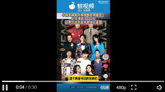 据媒体报道,11月10日,网红“小杨哥在”直播间宣布,“小杨甄选群星演唱会”将于11月26日在合肥奥体中心举行。他透露,这次演唱会已经花了3000万,3万张门票全部免费送,并将线上直播演唱会内容。