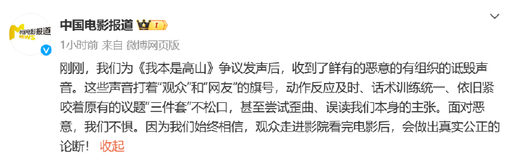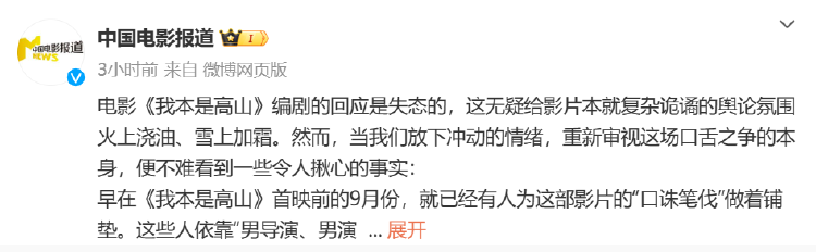 上文发布之后不久,@中国电影报道再次发文称: