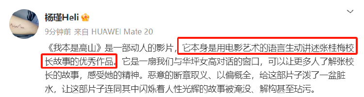 《我本是高山》是一部动人的影片,它本身是用电影艺术的语言生动讲述张桂梅校长故事的优秀作品。它是一扇我们与华坪女高对话的窗口,可以让更多人了解张校长的故事,感受她的精神。然而,恶意的断章取义、以偏概全,给这部片子泼了一盆脏水,让这部片子连同其中闪烁着人性光辉的故事被淹没、解构甚至玷污。“节奏大师”们表面上是为了张校长好、为了女性好,而扒开他们的“羊皮”,其险恶“狼心”昭然若揭。