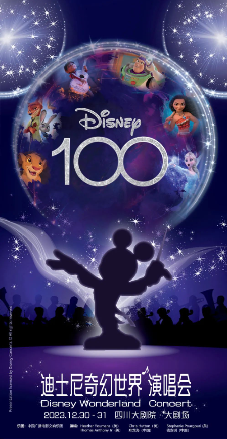 12月30日、31日,迪士尼100周年奇幻世界演唱会《WonderLand》将在四川大剧院大剧场唱响。届时,来自海内外的音乐剧唱将,将通过音乐为观众带来一段奇幻之旅。