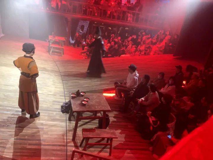 坐在演员身边的观众能感受到打戏时衣袖振荡的风,能看到演员额头上的汗。由于近距离接触观众,演员也更加注重情绪的表达和动作的细节呈现,把场内每一位观者当成是“客栈”里的“客人”,传统戏曲不再是普通人难以接近的艺术。