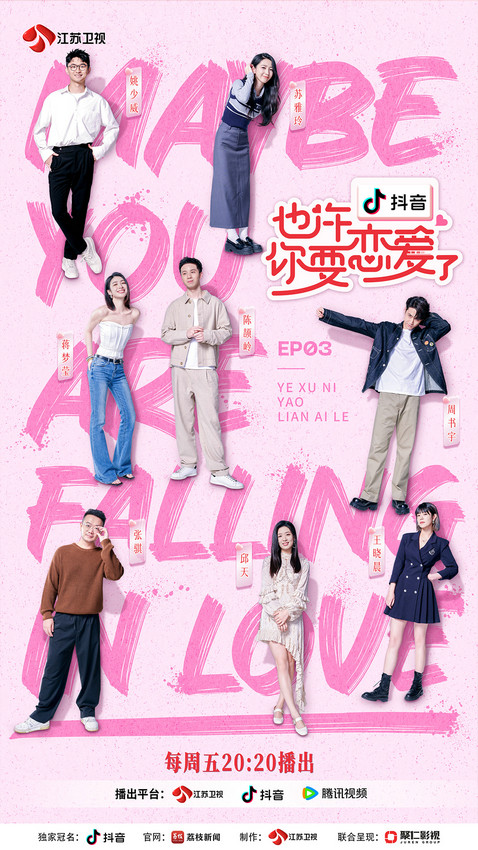每周五20:20,在在江苏卫视、抖音、腾讯视频守候《也许你要恋爱了》,跳出你的社交舒适圈,拥有无限可能的甜蜜吧!