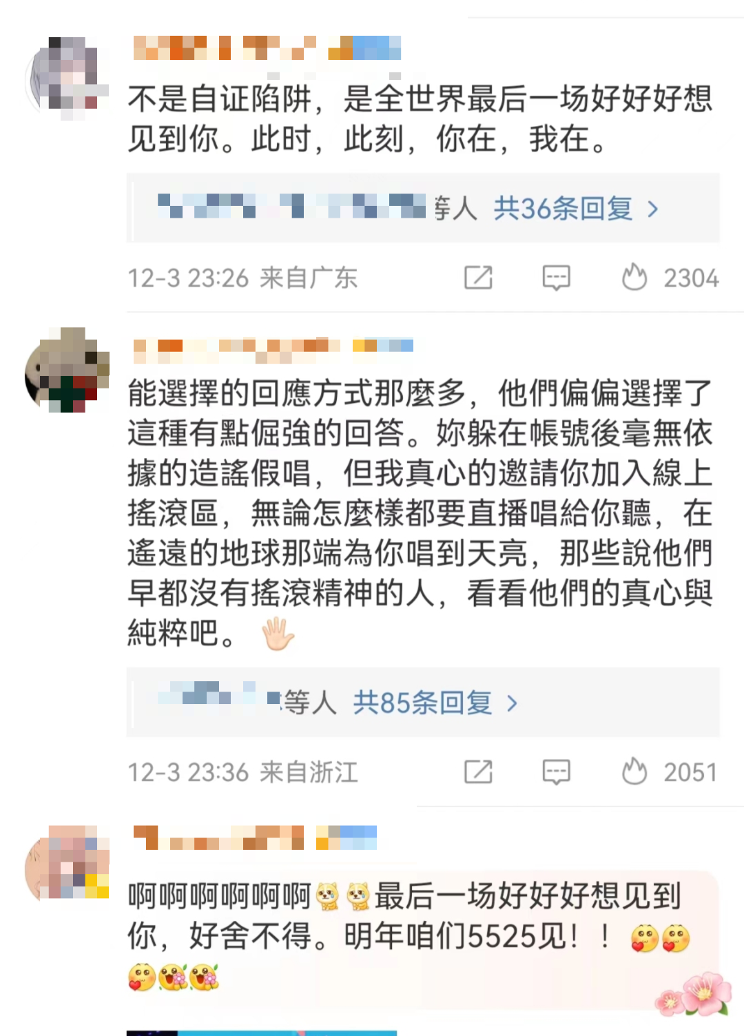 另据顶端新闻消息,12月3日,记者致电五月天经纪公司相信音乐相关工作人员,对方称并非宣传部门人员,无法对此事做出回应,建议记者拨打相信音乐官方电话,转接宣传部门。随后,记者两次致电相信音乐官方电话,均在电话接通刚说明来意后被挂断。