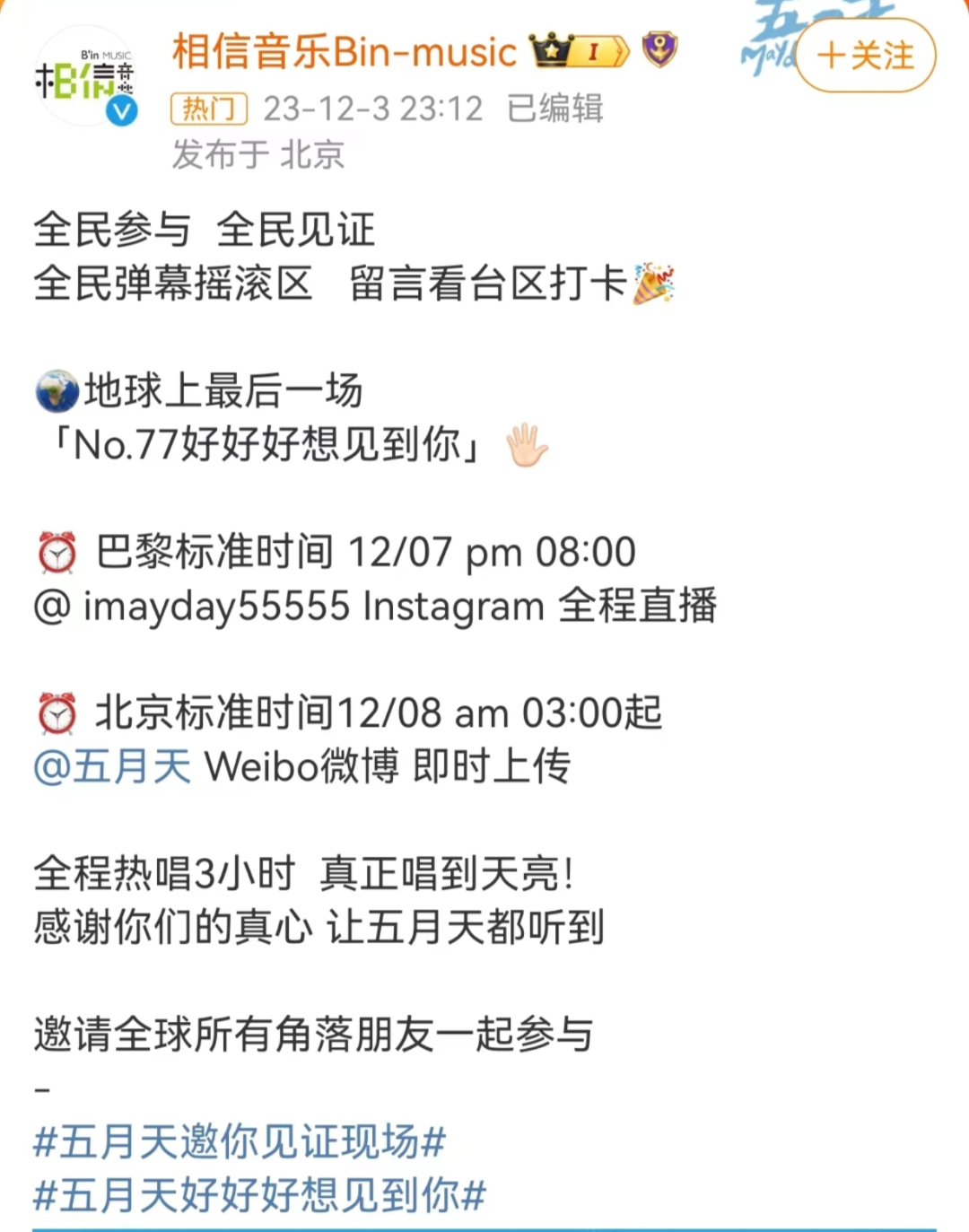 话题#相信音乐 五月天邀请你见证现场#